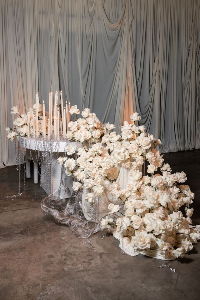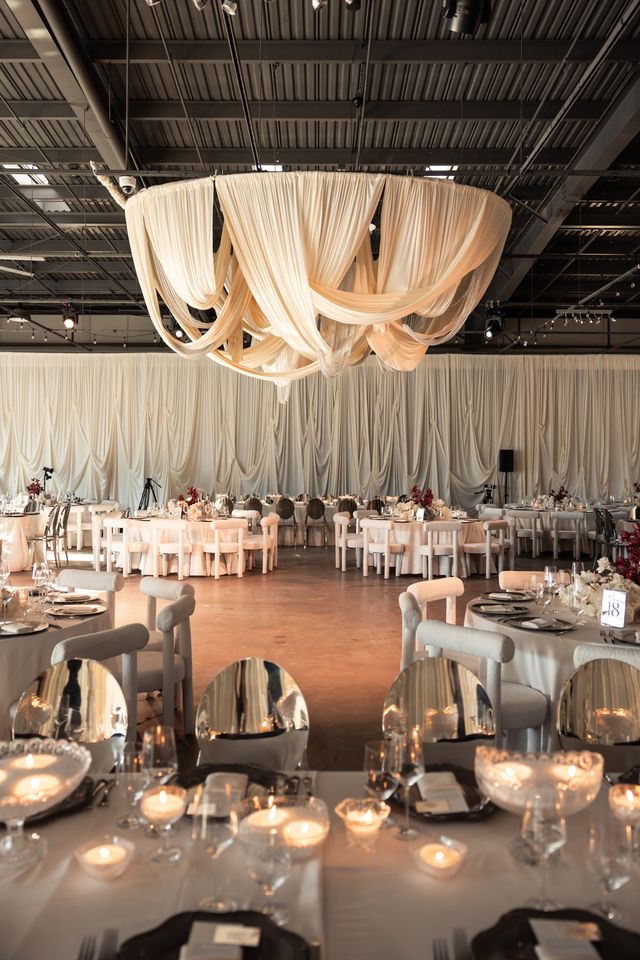 For this wedding in Downtown Los Angeles, our inspiration was edgy and industrial concrete and chains meet dainty fabrics and soft concepts.